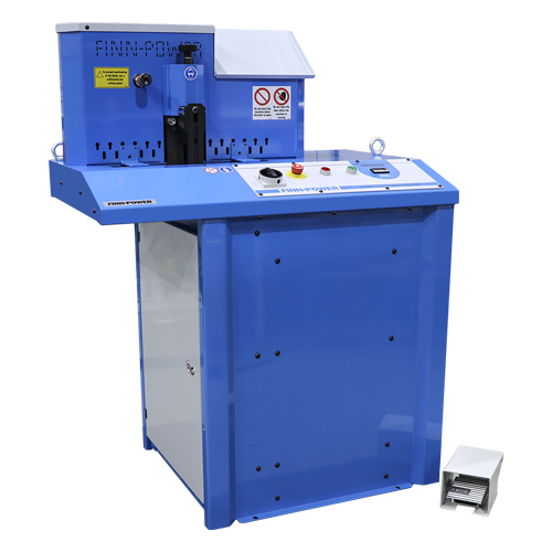 Finn-Power CM75 hose-cutting machine has been designed to cut up to 2” diameter 6-spiral hoses. The hose is pushed against the blade by a pneumatic pusher.