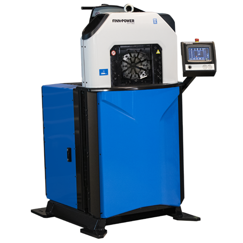 FP145 is an ideal machine for 2” 6-wire hoses and also for medium range industrial hoses. FP145 is available with separate hydraulic unit or as a compact model. With separate hydraulic unit, access to the back side of the machine is free, when part feeding from the back is needed.