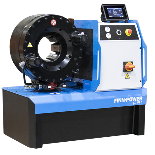 Multi-purpose table top crimping machine for hydraulic and industrial hoses. Easy part positioning with fixed center point crimping head. This model turns hydraulics off to conserve energy, and to reduce workplace noise levels whenever the machine is idle. The wide opening makes it possible to crimp industrial hoses up to 4 inches (ID).