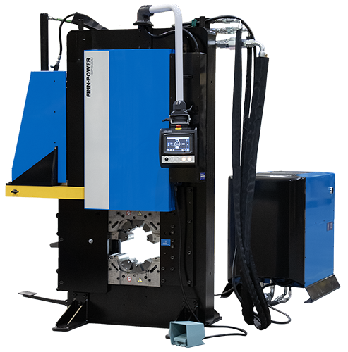 Finn-Power SP-series crimping machines with open C-frame structure are optimal for crimping any odd shape, bent or otherwise complex hose assemblies.